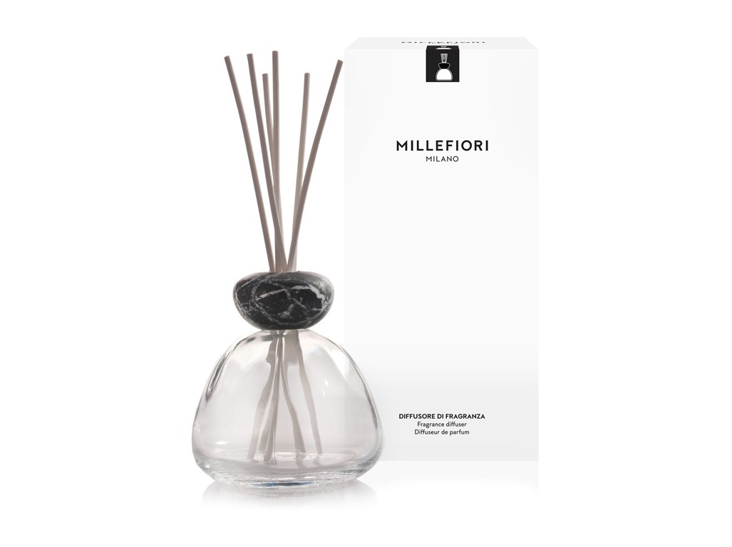Elegantní skleněné nádobky/difuzéry s vynikající stabilitou a kamenným vrškem, který dodává dotek noblesy. Obsahuje stébla, neobsahuje vonnou náplň - tu si můžete dle svého vkusu vybrat v náhradních náplních kterékoli kolekce Millefiori.
