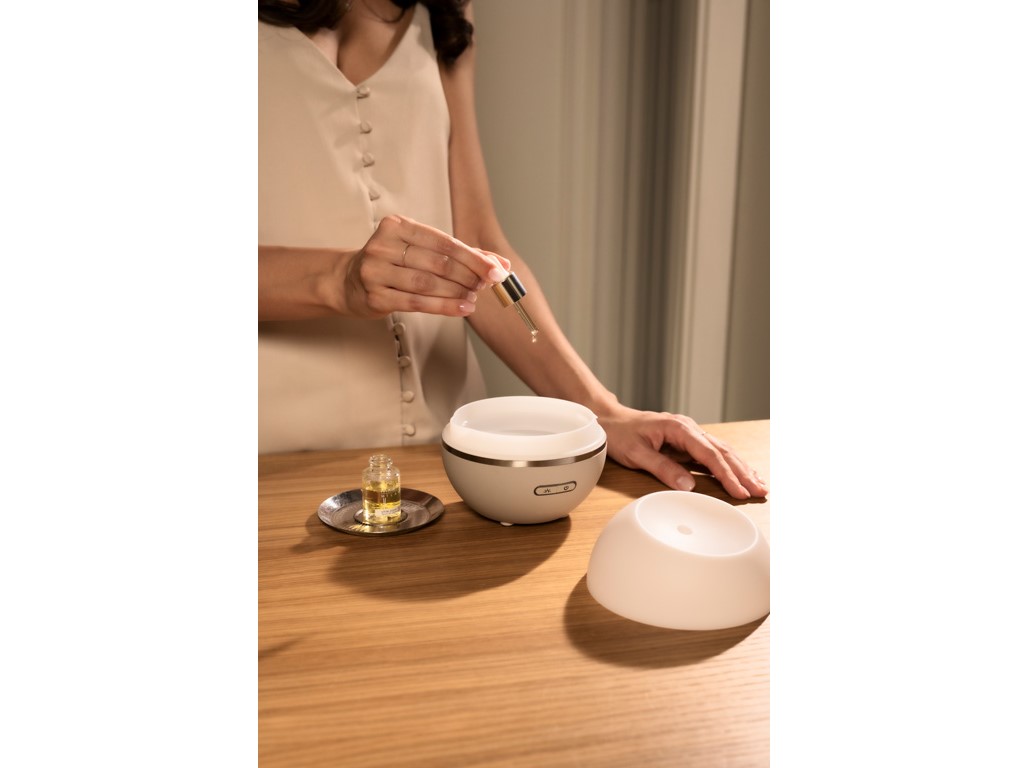 Elegantní ultrazvukový difuzér se používá s vonnými olejíčky řady Millefiori Natural. Stačí pár kapek do vody a díky rychlému odpařování se vůně pokojem line za pár okamžiků. Zároveň dochází ke zvlhčení vzduchu. Použití je zcela bezpečné a jde o zajímavý a funkční doplněk. Ultrazvukový difuzér má zcela tichý chod a svítí - buď se střídají barvy, nebo lze zvolit pouze jednu. Do nádobky nalijte dle návodu určené množství vody a nakapejte vonný olejíček podle požadované intenzity. Po odpaření vody se difuzér automaticky vypne. Výrobek nehřeje.
